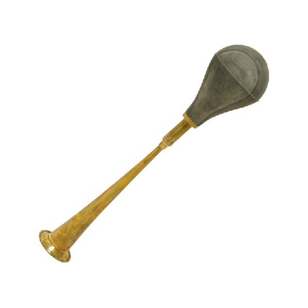 2 1/2" bell, 17" length. Brass bulb horn with removable reed and bulb...
