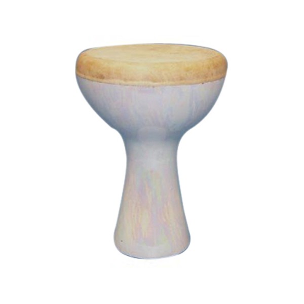 Ceramic Doumbek or djembe, white Sparkling with a fixed Remo Skyndeep head, 10.5 inches wide by 16 inches tall. This breakthrough design has a fiberglass body and a fixed synthetic head. Its deep Doums and high Teks will surprise you...