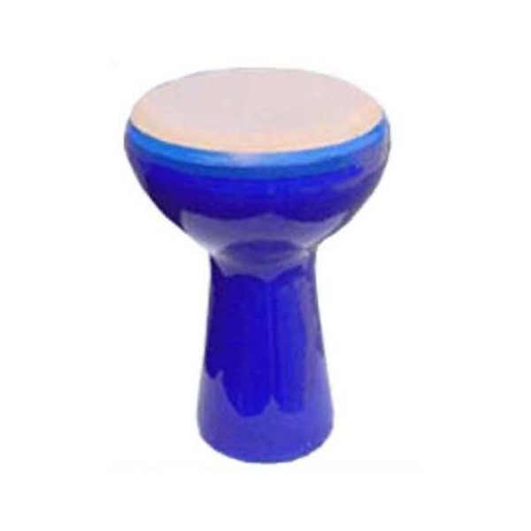 Ceramic Doumbek or djembe, blue Sparkling with a fixed Remo Skyndeep head, 10.5 inches wide by 16 inches tall. This breakthrough design has a fiberglass body and a fixed synthetic head. Its deep Doums and high Teks will surprise you...