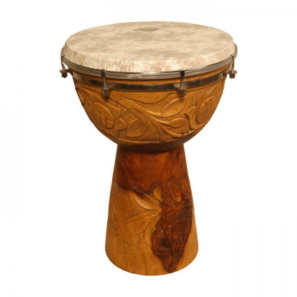 This affordably priced 10.5" Rosewood Doumbek is carved from two pieces of rosewood. It features an attractive floral pattern and has a goatskin drumhead...