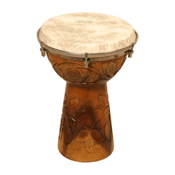 This affordably priced 10.5" Rosewood Doumbek is carved from two pieces of rosewood. It features an attractive floral pattern and has a goatskin drumhead...