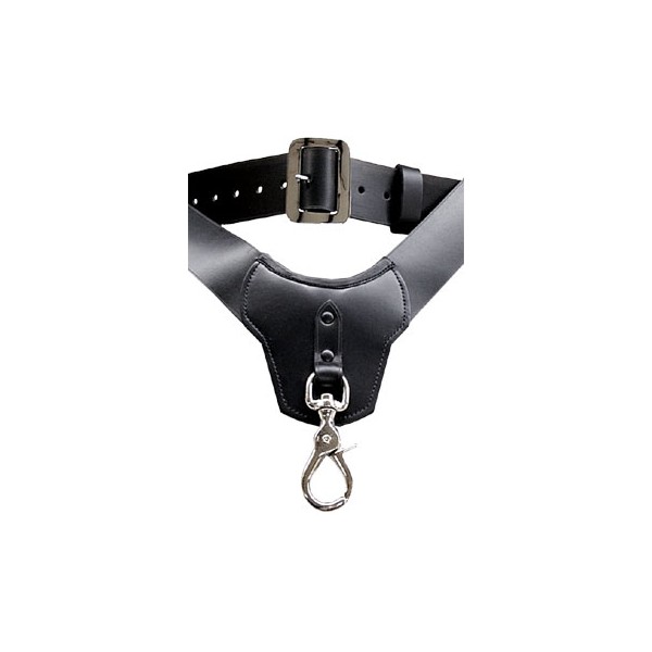 1 Hook Bass Drum Harness (Sling) made in good pure black leather. This harness has two long straps so that the yolk snuggles up to the neck of the player and the two straps the get.