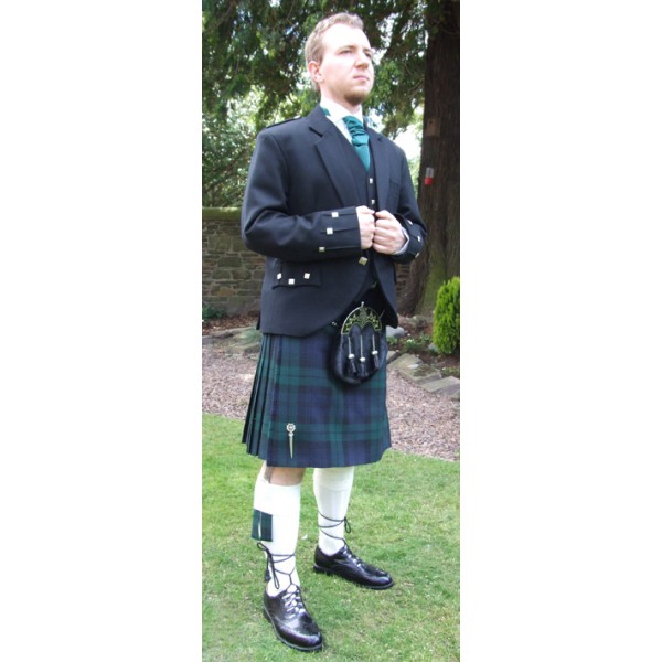 This is our full highland outfit dress for Pipers and drummers, our top quality warm or non warm argyll jacket, doublet jacket, charlie jacket use in winter or summer season, best quality tartan plaid and tartan Kilt made in acrylic wool available in difference tartan, pure 100% leather kilt belt with nickel plated buckle made in all brass , plaid brooch, glengarry hat, sgian dubh, rabbit hair sporran, brogues with white spats, matching hose tops, red flashes and bow tie. This outfit is available in other tartans please enquire for details.